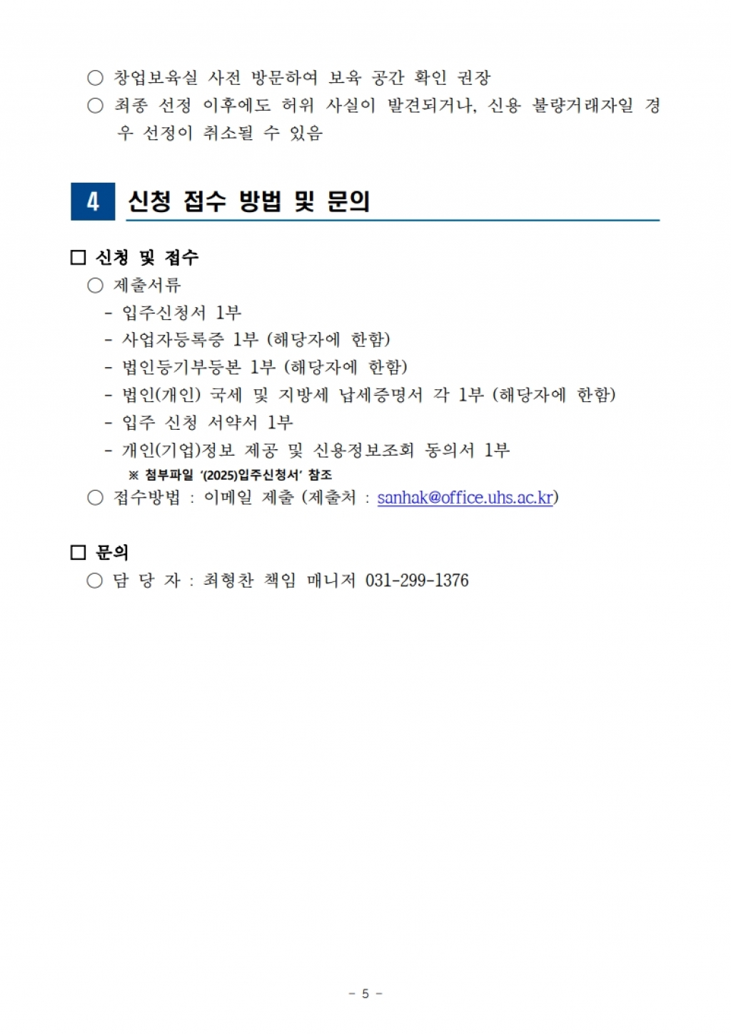2026년 협성대학교 창업보육센터 상반기 신규 입주기업 모집공고