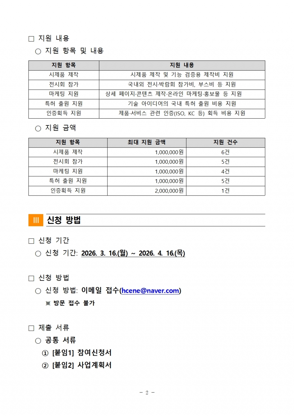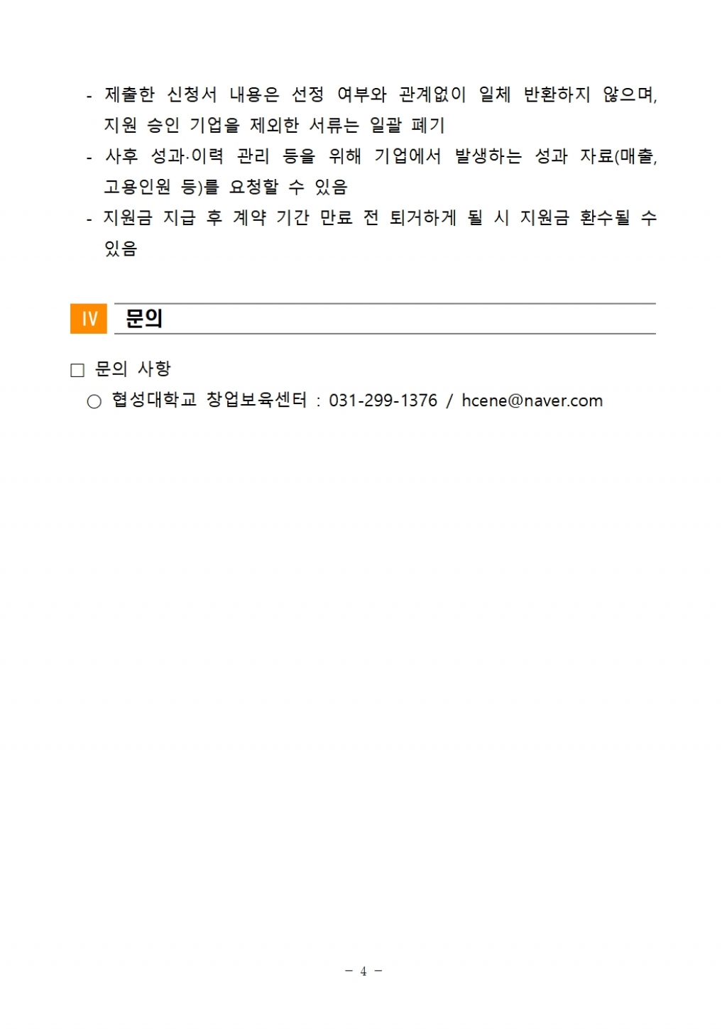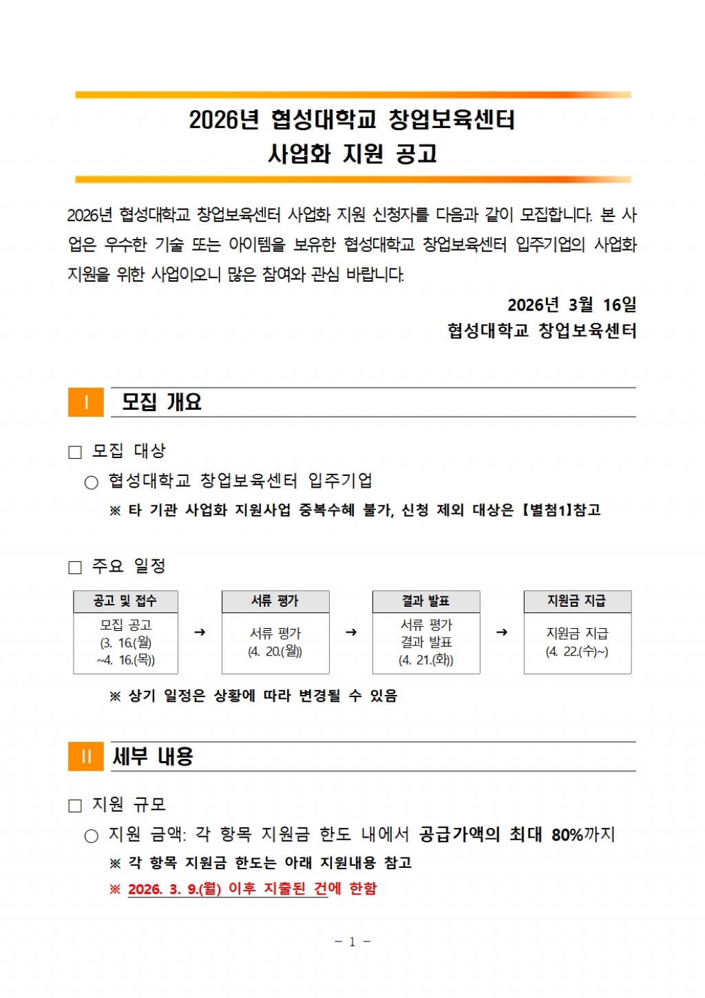 2026년 협성대학교 창업보육센터 사업화 지원 신청 (~4. 16.(목))
